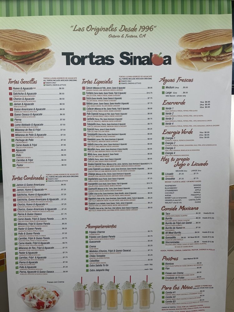 Introducing Tortas Sinaloa, a vibrant gem in Fontana, CA, dedicated to authentic Mexican cuisine. This eatery is renowned for its handmade tortillas and flavorful dishes that leave diners craving more. With a menu that highlights irresistible tortas, each generously filled and complemented by crisp pickled jalapeños and carrots, Tortas Sinaloa ensures every bite is a fiesta of flavor.
